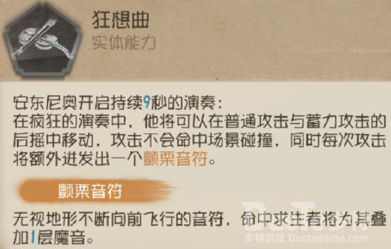 ① 【颤栗音符】命中求生者不会对其造成伤害,但是可以对其叠加一层魔音状态;