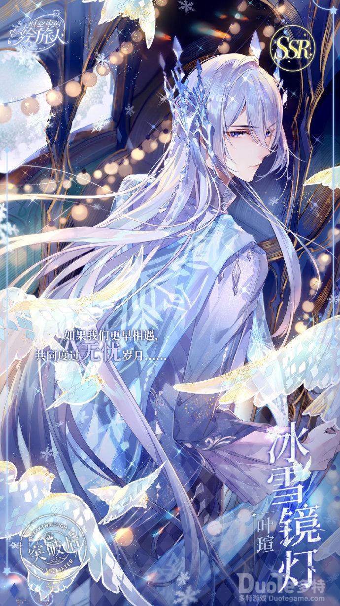 时空中的绘旅人是一款美少男冒险恋爱的养成手游,在游戏里面不同的活动所带来的奖励是不一样的,而且每一个阶段的奖励品质也是不同的,最近官方为玩家推出了叶瑄新皮肤冰雪镜灯,下面就让我们来看看时空中的绘旅人叶瑄新皮肤冰雪镜灯介绍。