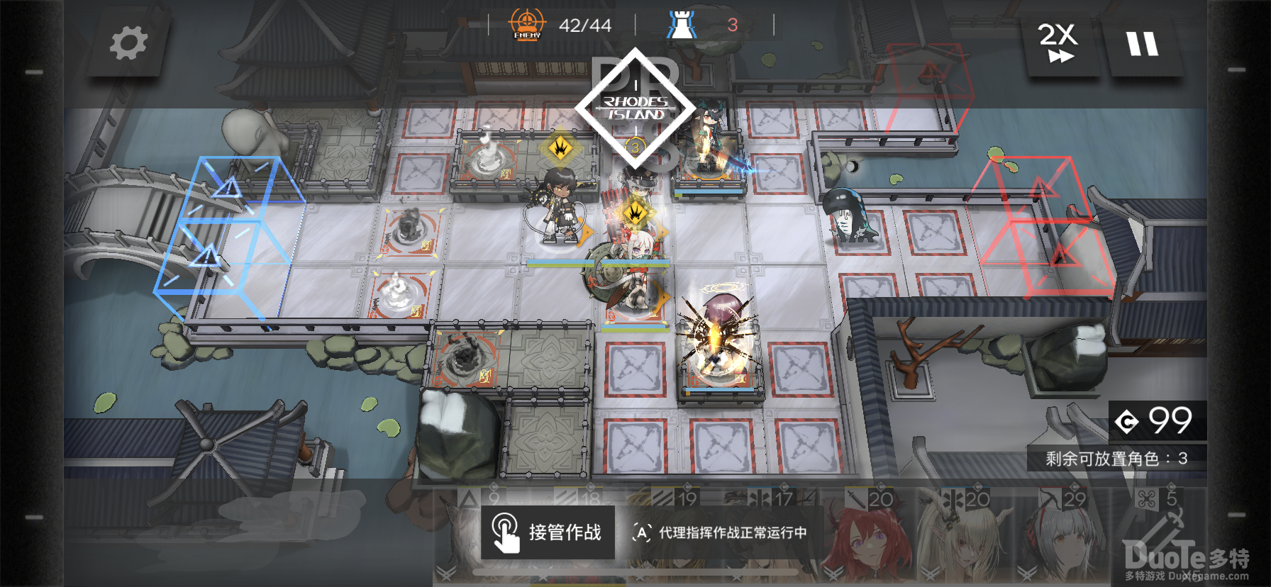 阵容方面选择了开荒用的万能阵容,不放心可带一个快速复活特种干员,所有角色都是可以下位替代,本阵容仅供参考。