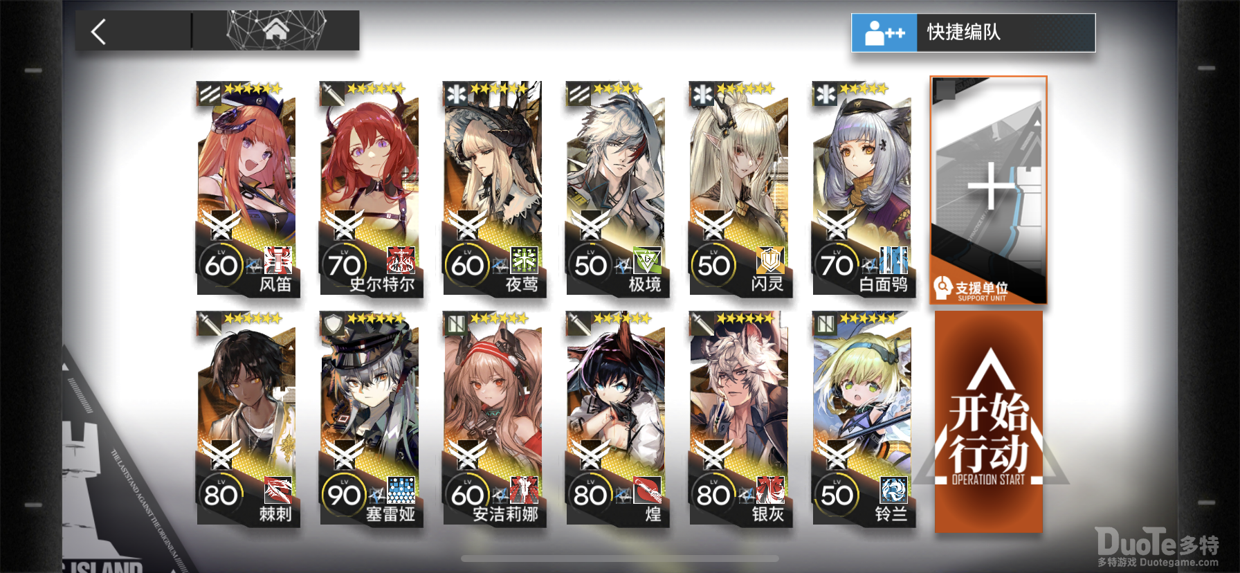 阵容摆放如图所示,优先下极境,如果回费来不及就先下风笛再下煌