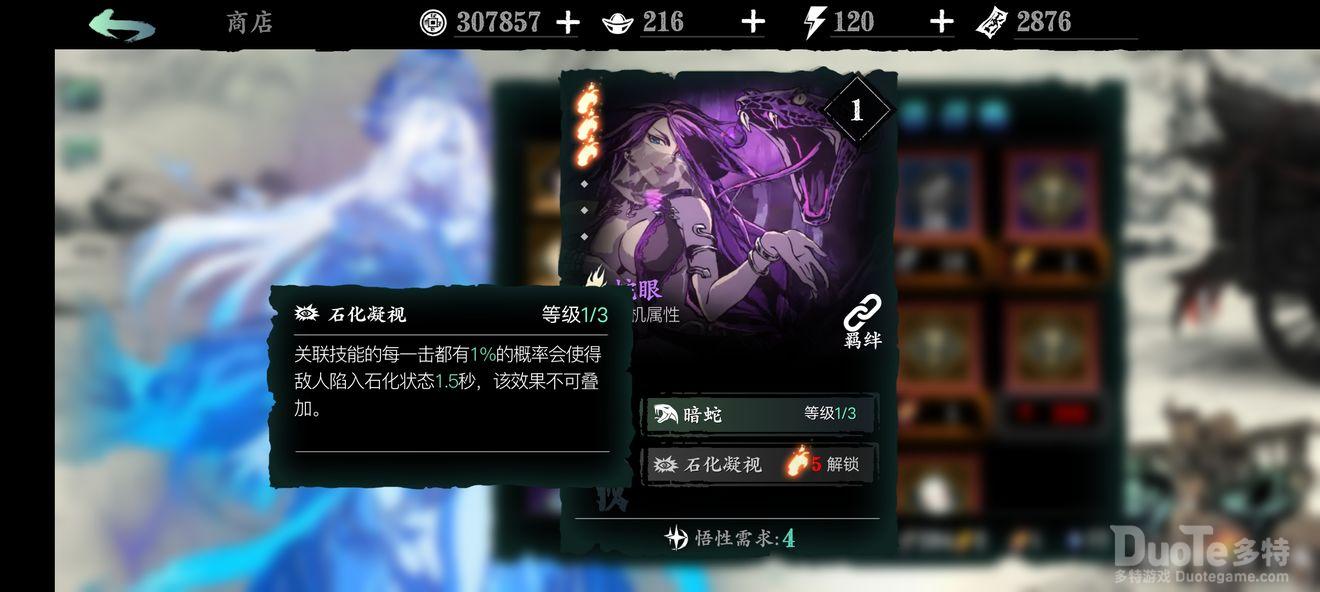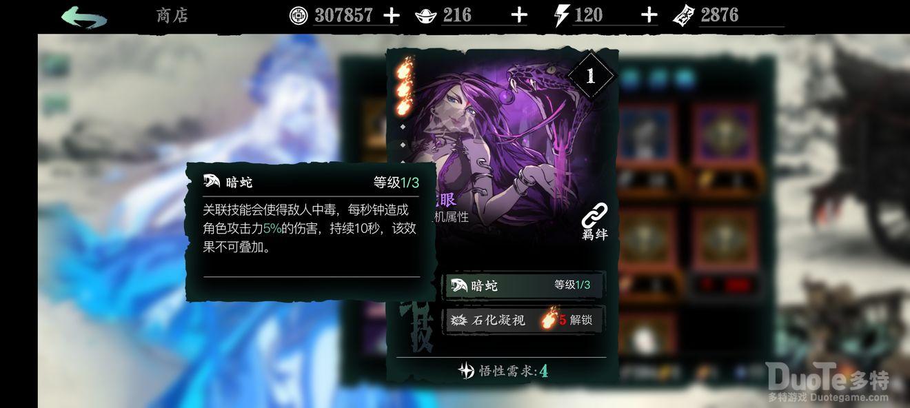 蛇眼:1绝技辅助输出;2绝技概率石化,前期到后期都很好用,紫色心法容易养成;能和魔堡搭配构成t0级别的魔堡羁绊。