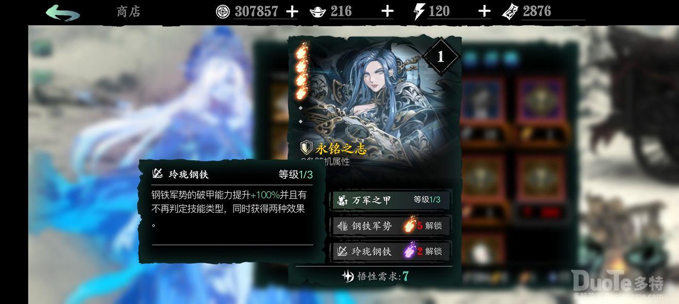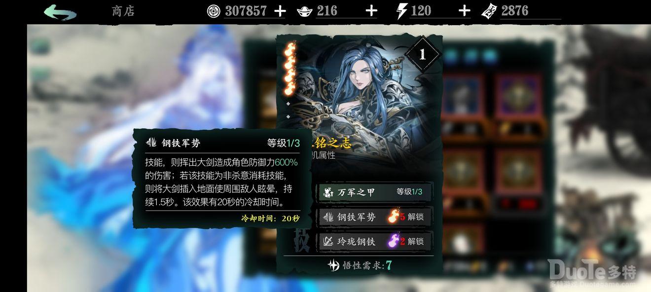 永铭之志:1绝技增加防御;2绝技非霸体boss百分百眩晕,前期用到后期的神技,冷却时间不长,可频繁使用;3绝技增强破甲和输出。