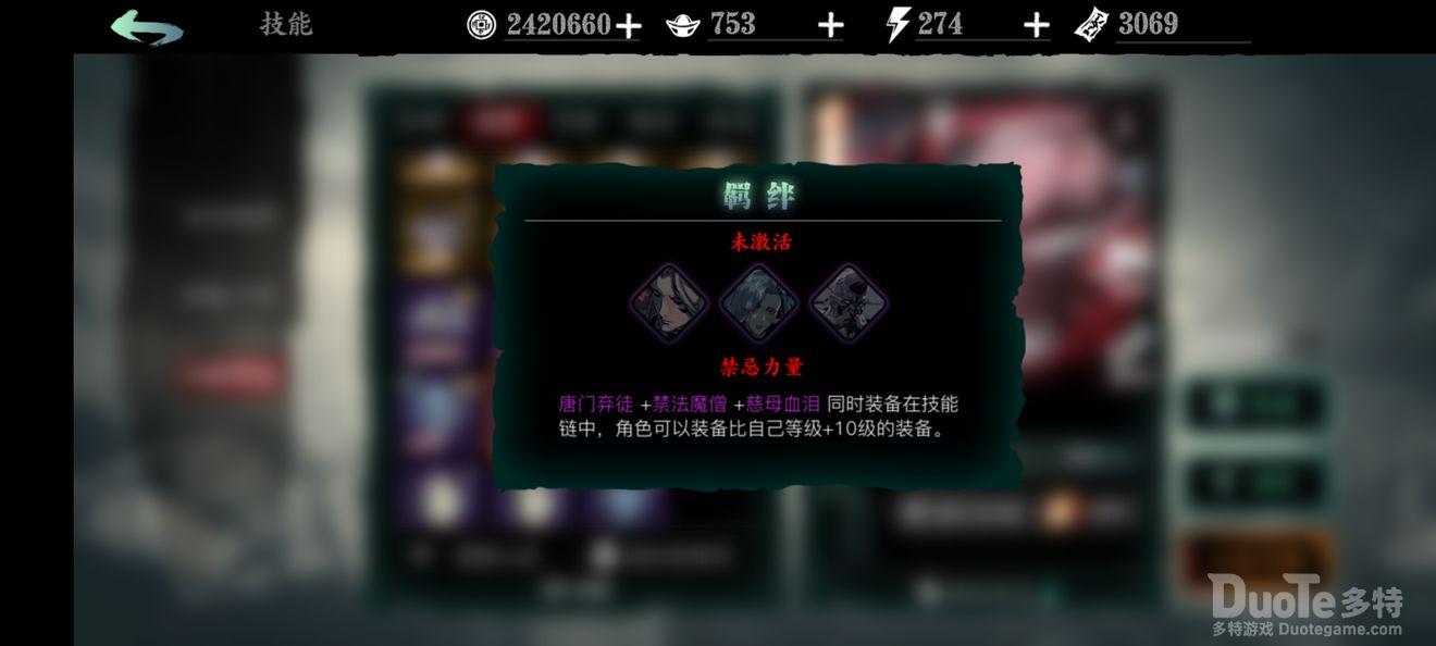 唐门弃徒: 1绝技增伤,2绝技辅助输出,可与禁法魔僧、慈母血泪构成t2级别羁绊禁忌力量。