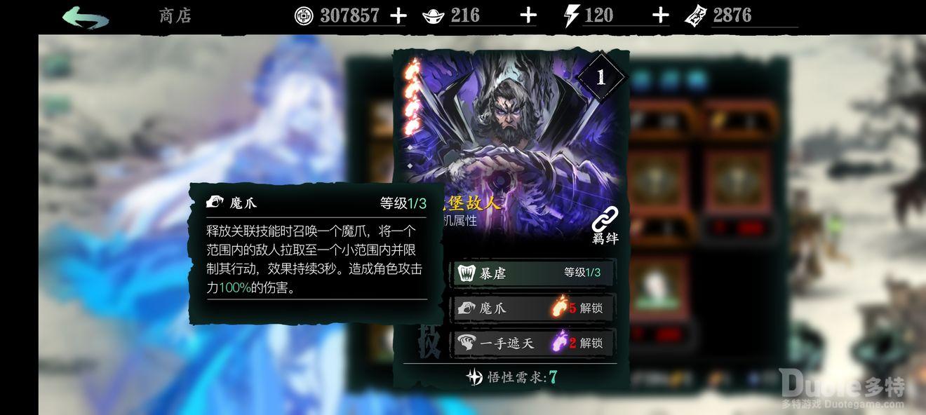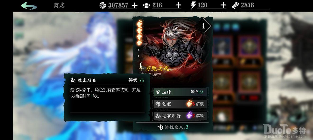 万魔之魂:1绝技增加角色基础面板的暴伤,非常强力;2绝技的增伤增防buff也非常可观;3绝技免控,前期用到后期的神技。