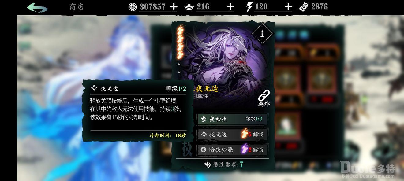 永夜无边:1绝技增加杀意,装备中散搭杀意流套装的话很实用,前中期杀意不足用这个也很好;2绝技让敌人在一定时间内无法使用任何技能,冷却时间也短,可频繁使用,非常强力,pvp和极致伤害流的pve胜负都在瞬秒间;3绝技可以用来在技能空档期闪避保一波命,辅助输出。