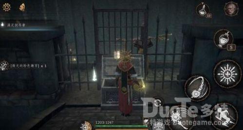 之后继续推进主线剧情,帮疯子降下牢笼后,触发主线帮疯子打开囚牢,这个时候的囚牢已经被打开了,往下探索开启机关放另外一个囚牢下去,下去之后可以看到一个堆叠空牢笼的洞口,进去洞口可以看到一个箱子,打开获得第二个任务道具微光的粉色嫩芽。