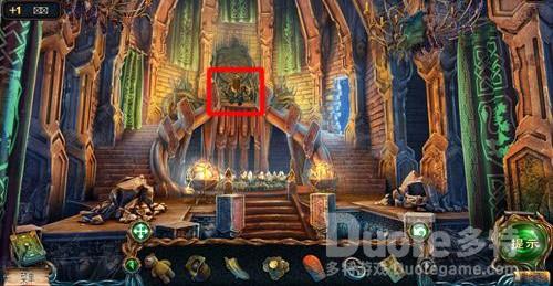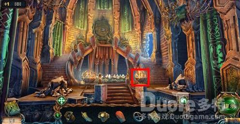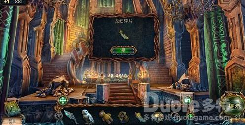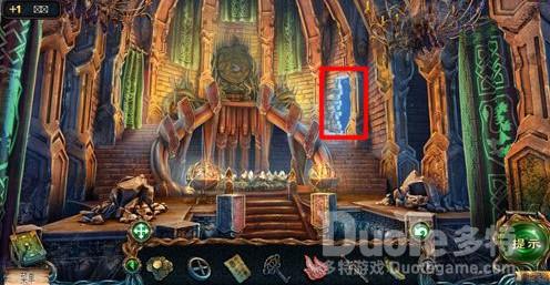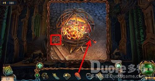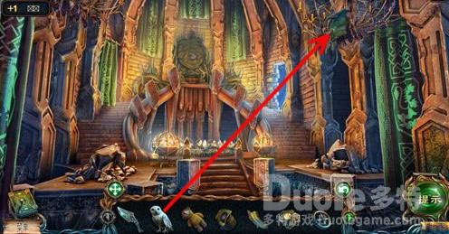 点击道具栏中的猫头鹰,再点击右侧柱子上面的碎片。