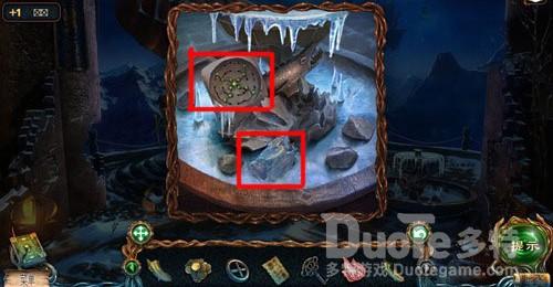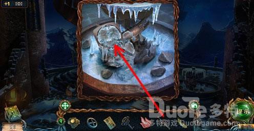 在喷泉中会出现一个镶嵌宝石的图案,记住这个图案。点击喷泉下面的冰块,可以获得一个冰块。。