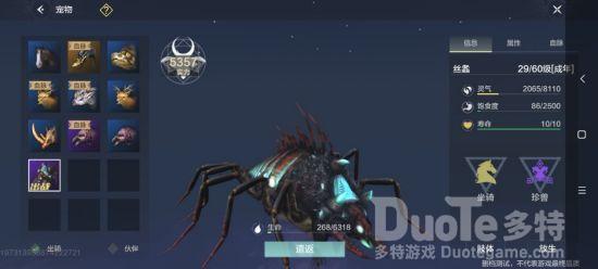 战斗类:丝螽:百年虫子,属于沙漠生物,算是百年里面比较强的一种宠物,斗兽打架比较强