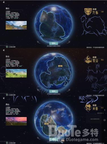 降生地:进入游戏之后,玩家需要选择降生地点,也就是之后房屋建造点。在妄想山海这款游戏中,主要分为四块大陆,对应三个阵营。即东山属烈山阵营;西山属有熊阵营;南山属九黎阵营;中山大陆则是混乱区不可安家,不同阵营的玩家以红名相见,胜者则可以掠夺中山上的稀有资源。每片大陆基础物资丰富且相似,玩家可依据喜好选择阵营。如果需要,可以随时搬家换阵营。