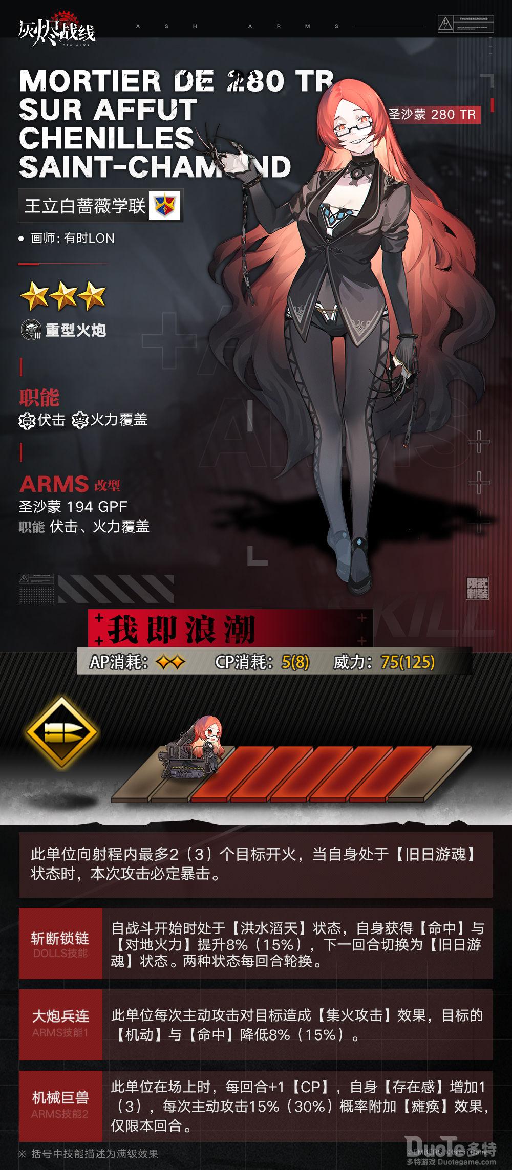 以上就是灰烬战线新角色圣沙蒙280TR介绍了,希望对大家有所帮助。