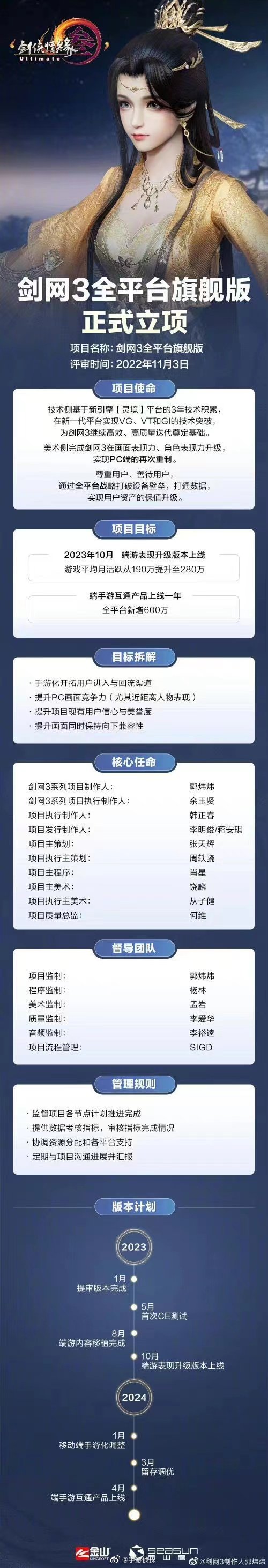 近日,剑网3制作人郭炜炜发博宣布剑网3全平台旗舰版已经正式立项!