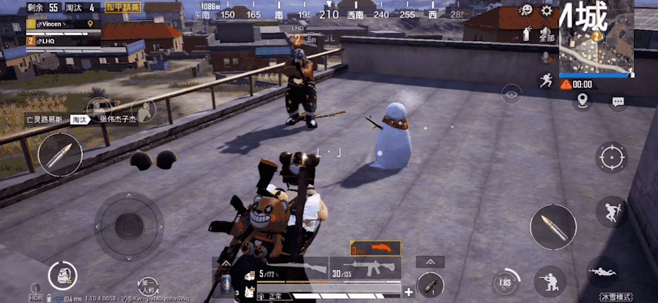 遇见走位风骚的对手,小编就会直接掏出雪球枪,一发雪球让他“定住”。如果雪球没有命中敌人,则会在落地的位置变成一个快速长大的雪人,雪人长到极限后发生爆炸,冰冻附近的玩家。如果是敌人被冰冻,还会受到伤害。