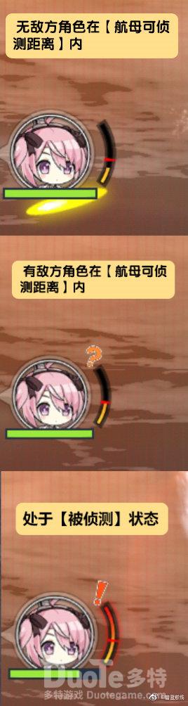 被侦测状态:战斗内,每一位航空母舰舰船都将增加<被侦测计量条>显示,用于判断是否<被侦测>及恢复<隐匿>状态