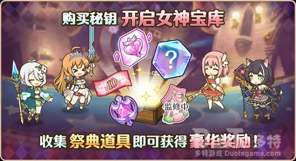 除此之外,购买「女神祭宝库秘钥」道具后还将额外解锁「女神宝库」!当收集的「女神币」数量满足指定要求后,还能从「女神宝库」中额外获得公主之心(碎片)、角色记忆碎片、扭蛋券、限定专属家具等各种豪华报酬!