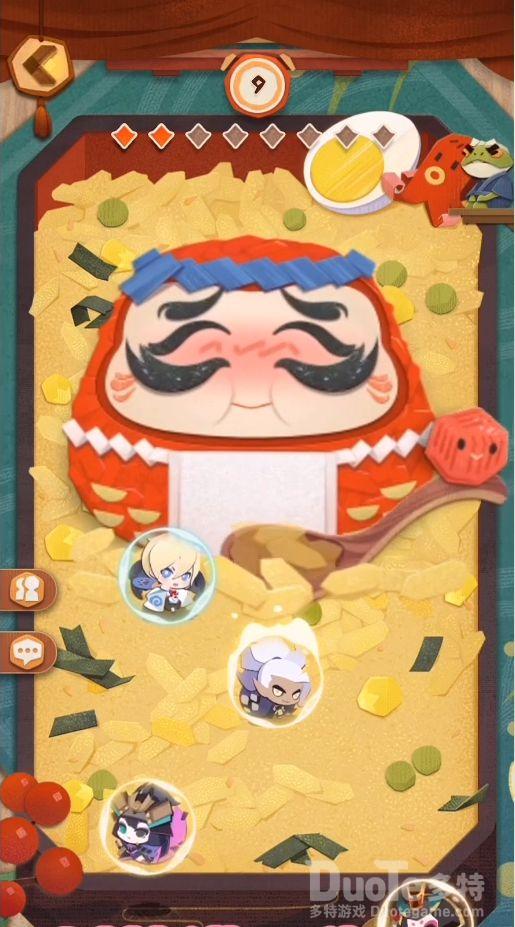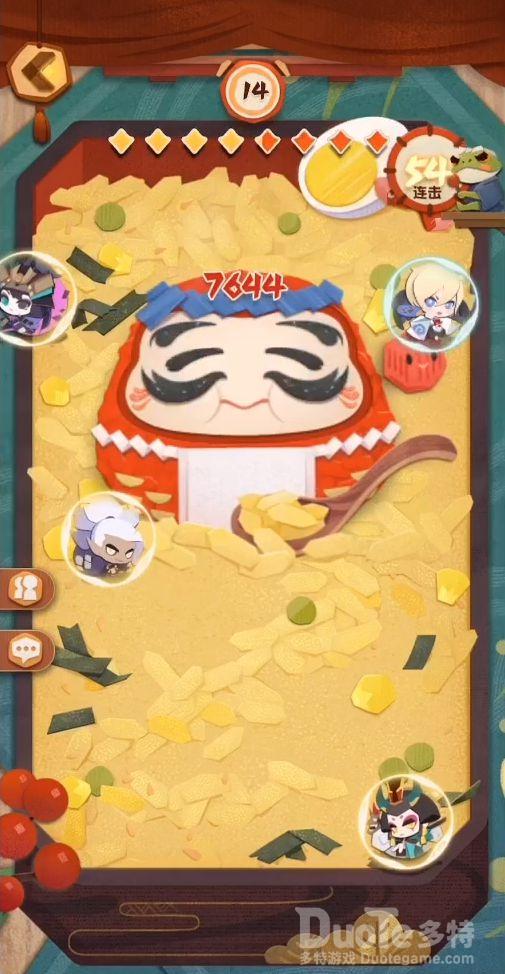 美食副本的通关时间是有限制的,家主需要在6分钟内消除所有小丸子达摩,并且对贪吃达摩造成尽可能多的伤害,以获取食材奖励。