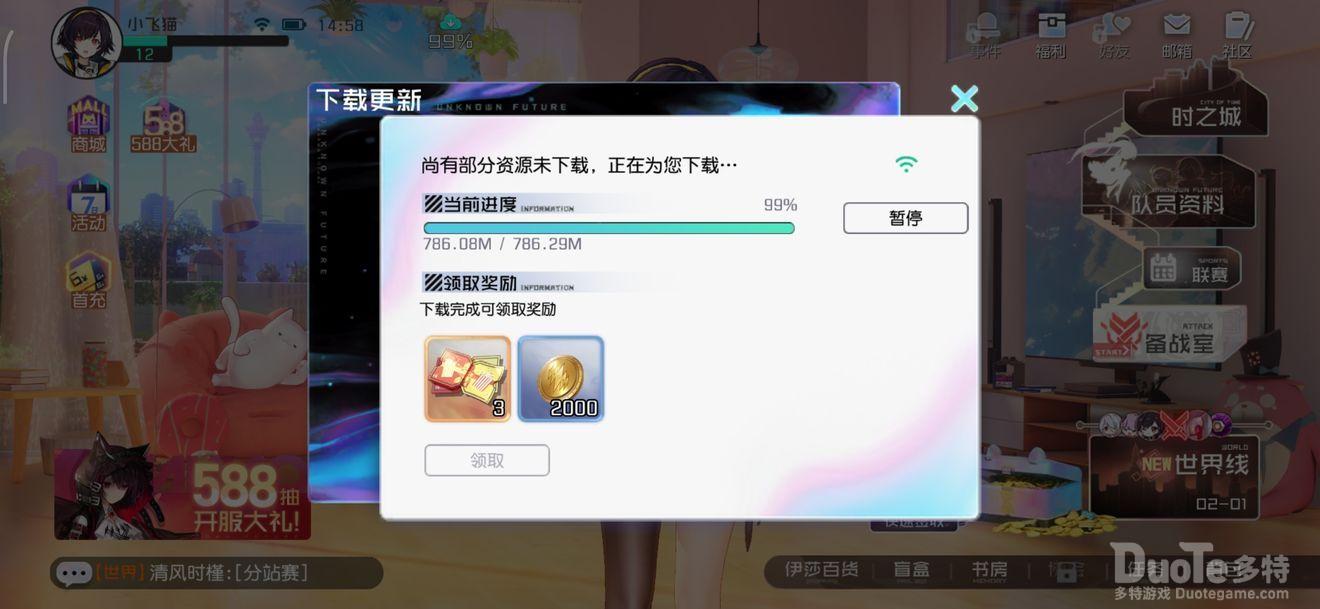 而很多人也会遇到这种情况,资源包下载到99%的时候就完全不动了,出现这种情况的原因可能是网络环境不好,试试先暂停,然后再继续下载。还一种就是需要切换成流量下载,也能恢复正常。如果切换了网络,暂停继续测试几次,也依然卡住的话,那么去官网下载PC端应用,然后用PC端登录游戏进行下载,然后领取奖励!
