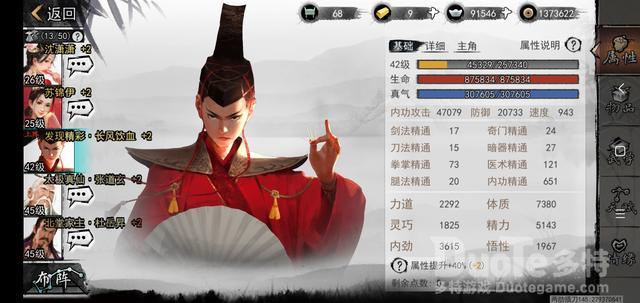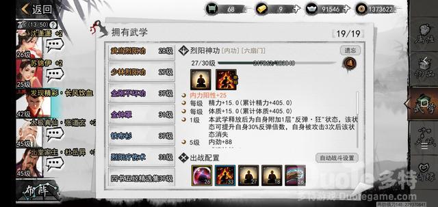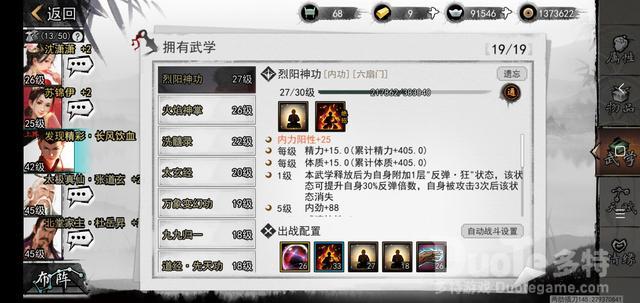 可以看到,主角师从六扇门,19门武学全修的是内功,内功加成体质精力,血量惊人,如果带上装备,血量上百万都是很简单的。
