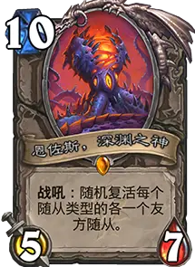 克苏恩作为以前著名的突突突,新版本降临依旧是突突突。但是它会在对战的开始就将自己分裂成四个碎片,你只有将所有的碎片打出才能触发它的机关枪模式。其触发之难,效果之拉跨远不如克苏恩和机械克苏恩来的实在。要是硬说能在空场情况下斩杀对面英雄(当然狗贼除外),再加上他那碎片的机制,叫我想起了我的一个老朋友。