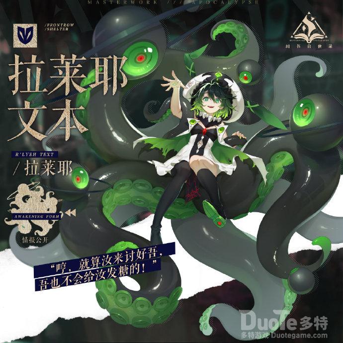 幻书启世录是一款回合制类型的手游,在游戏里面玩家可以根据不同的游戏角色来进行编队,每一个队伍都是有着自己的特殊技能的,最近官方为玩家推出了一个新的角色,下面就让我们来看看幻书启世录拉莱耶文本介绍。