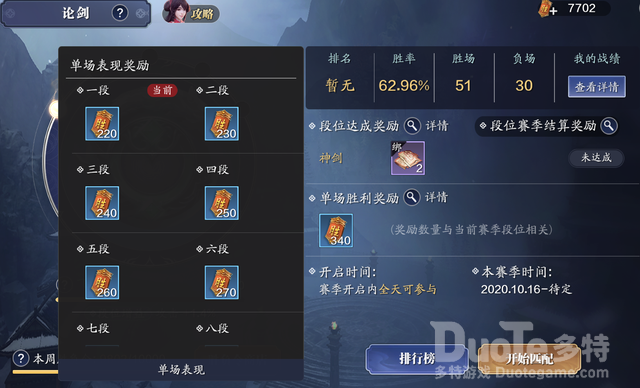 1v1论剑的胜负令获取是随着段位的高低来算的,段位越高单场胜利奖励就越高,一段胜利也就220的胜负令而且还面临着输胜负令更是少得可怜,在这里不建议1v1论剑的方式去刷胜负令。