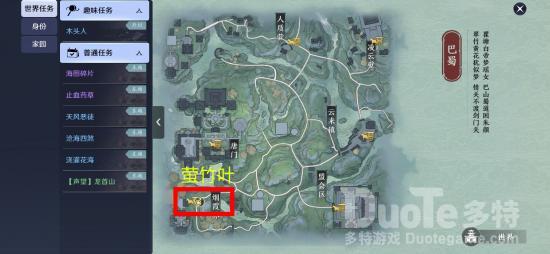 萤竹叶只能在雷雨闪电之下才能分辨出颜色,我们先自动寻路到巴蜀,按照之前步骤得到文字线索。