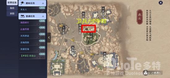 沙中棘生长荒漠绿洲。先自动寻路到燕云,按照之前步骤得到文字线索。