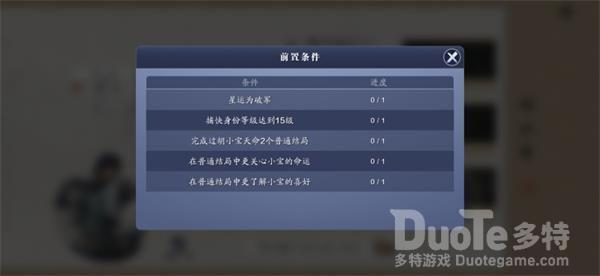 在天涯明月刀游戏胡小宝的个人自传中,玩家只要达成前置条件 ,并在其中加入一些情节 ,就可以开始选择天涯明月刀的天命结局 ,许多玩家不知道胡小宝天命结局伏法的达成方法,下面就让我们来看看天涯明月刀胡小宝天命结局伏法达成方法介绍。