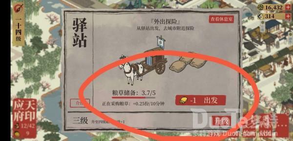 探险的地图里边看见摇钱树要记得去采,都是钱呐!然后那个布林布林发光的像山泉的也记得去采,那个是体力。驿站在资源丰富的情况要记得升级,升级后储存的粮食会多一个,也意味着能多探险一次。还有就是!不是一天只能探险一次,只要这个红色的条上边那个“粮食储备”斜线左边的数字不是写的0了都可以继续探险的!