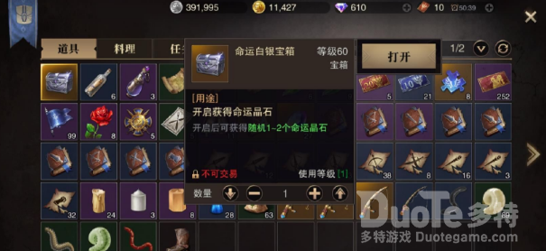 5、开启命运黄金宝箱和命运白银宝箱可获得数量不等的兑换道具命运晶石(命运黄金宝箱开启后固定获得20枚命运晶石,命运白银宝箱开启后获得1到2枚命运晶石)