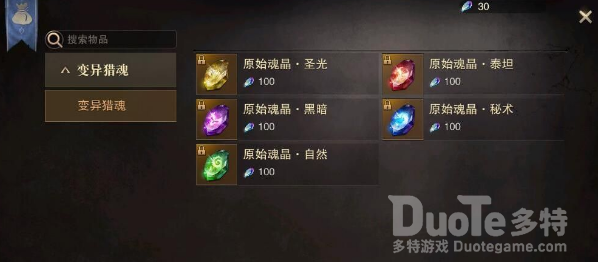 6、使用一定数量的命运晶石可在伊卡洛斯处兑换不同神系的原始魂晶,打开原始魂晶即可获得对应神系的随机一个变异猎魂。当然,是否能开到自己想要的变异猎魂,还是要看脸啊……