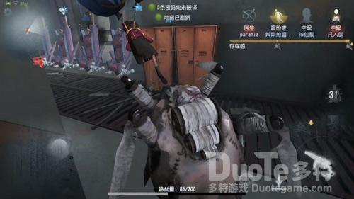 当你被抓的时候 :但你被抓,第一时间发信号提醒队友的救助,因为地下室楼梯较长,屠夫需要花费的时间多,这样如果队伍中有前锋,空军就可以及时使用技能帮助你逃脱,避免被绑到地下室。