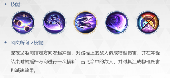 技能分析泷夜叉姬的冲锋位置与控制技能。冲锋结束可控制横扫方向以击飞与减速敌人。可以用于突进击退敌人,减速效果可增加其他技能命中率。