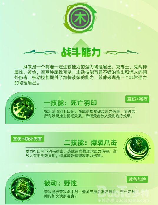 一起来捉妖是一款互动类型的养成竞技手游,在游戏里面玩家可以更具不同的区域来进行各种属性和形态的妖灵进行捕捉,每一个妖灵进化的路线都是不同的,最近官方为玩家推出了一个全新的妖灵,下面就让我们来看看一起来捉妖新妖灵凤来介绍。