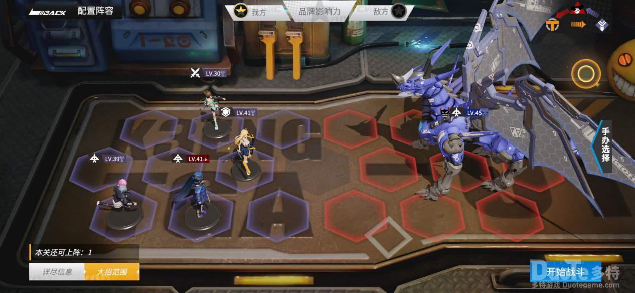 肉盾角色背后不要站角色,避免大龙攻击肉盾时,背后的输出角色被龙炎误伤,可以让1各重装布阵在中间横排吸引伤害;另一个前排手办单独摆放在最上面的横排,当中路肉装提前死亡时充当副T的作用;其余远程摆放在最下横排,尽量让支援手办覆盖到更多队友。