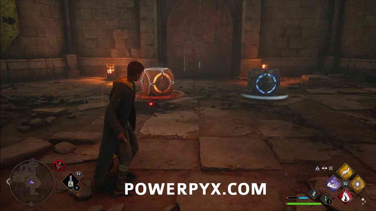 这将显示一个立方体,使用Accio或Windardium Levioso将立方体放在基座上。然后在左边的立方体上施放燃烧,在右边的立方体上施放冰河咒语。如果做得好,立方体后面的一扇门将打开。