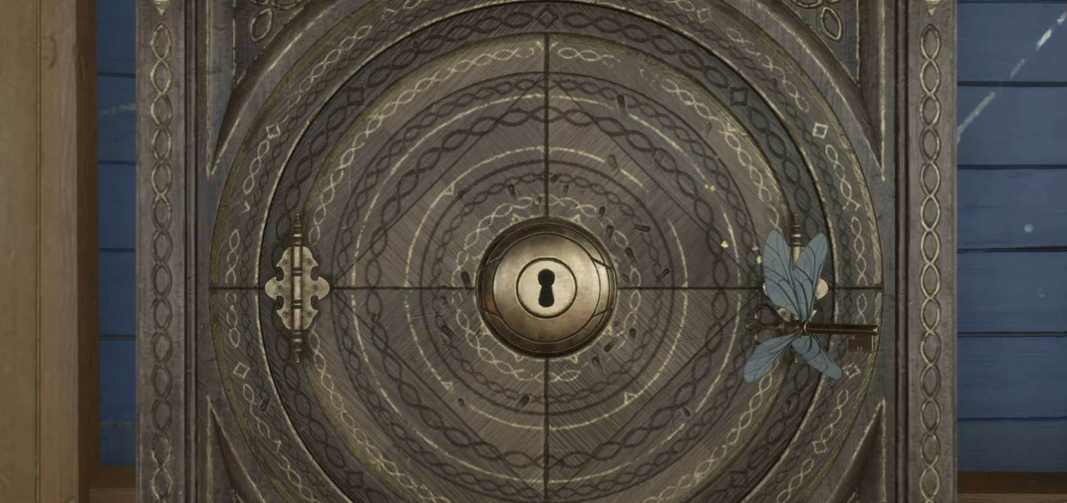 您将到达一个带有蝴蝶拼图的紧闭门的房间。