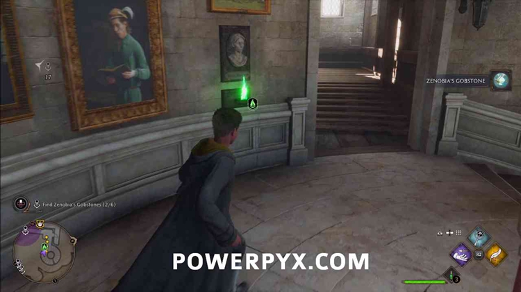 总共有6个高布石要找,在与泽诺比亚交谈后,按照任务标记前往变形庭院,获得第一个高布石。你必须使用Accio来获得每个高布石。