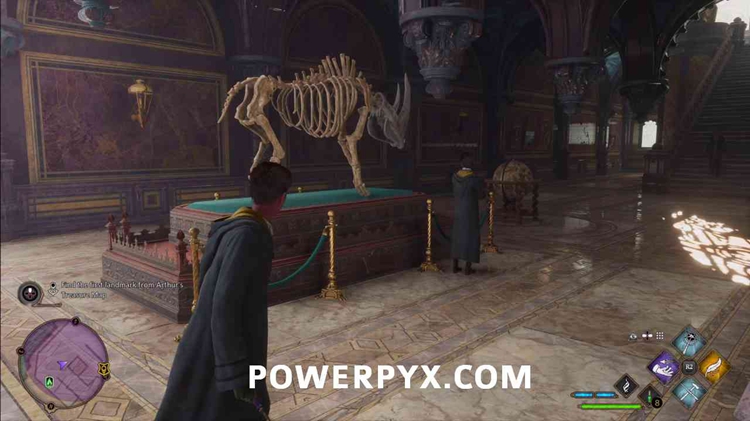 对于第一个地标,只需在亚瑟面前下楼梯即可。然后你会看到犀牛骨架已经在左侧,只需靠近它,你就可以进入第二个地标。