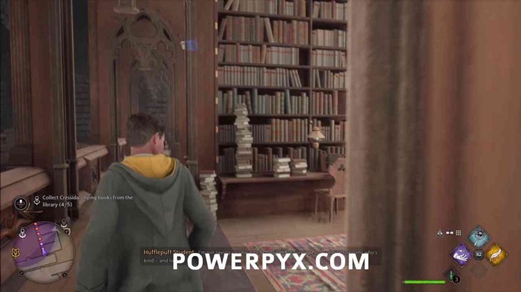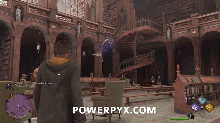 它们在图书馆一楼的书架之间飞来飞去。您可以使用 显形法术 通过货架查看它们,因为它们会发出蓝色光。要收集它们,只需朝它的方向看并使用 Accio。