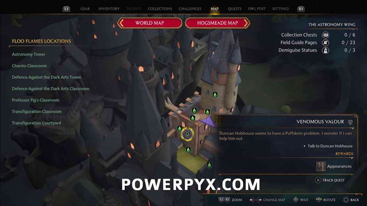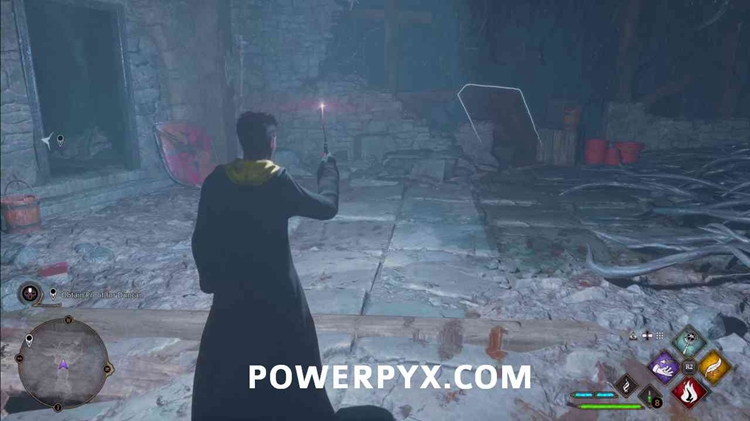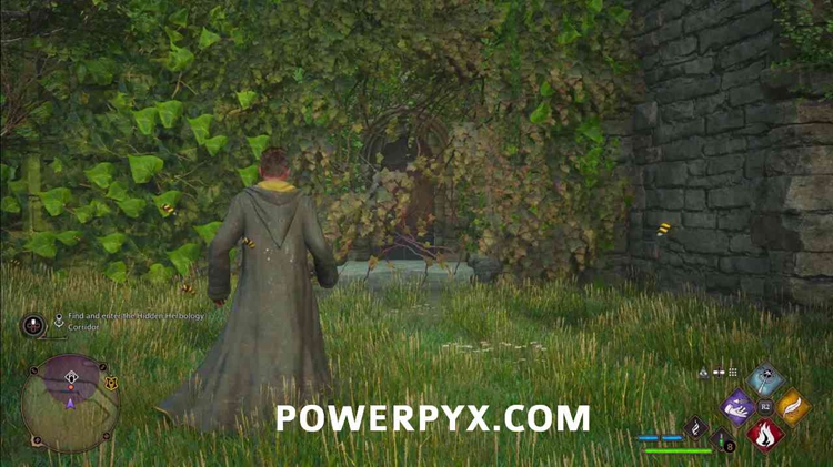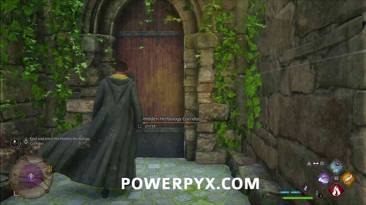 按照任务标记前往霍格沃茨场地,并使用燃烧进入隐藏草药走廊。