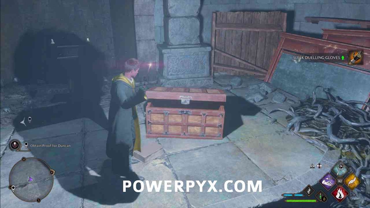 现在只需使用画作顶部的 Accio 即可在画作后面显示一个宝箱并打开它。