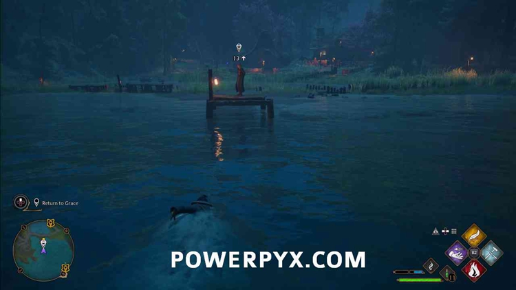 如果现在是白天,请打开地图并按 :R3: / :rs: 进入夜间。现在去禁忌福雷斯特快速旅行站附近的桥上施放卢莫斯。