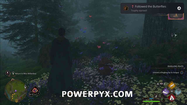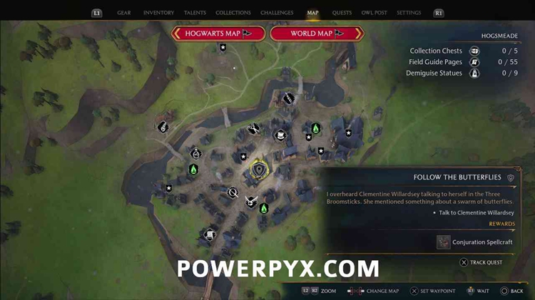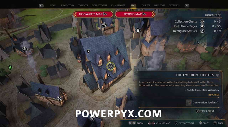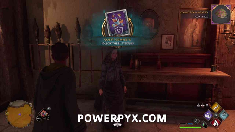 在三把扫帚里和克莱门汀说话,她想让你找到并跟随一些蝴蝶。