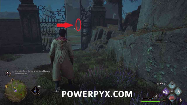 要到达宝箱,请前往庄园的地下。使用下图中标记的入口。