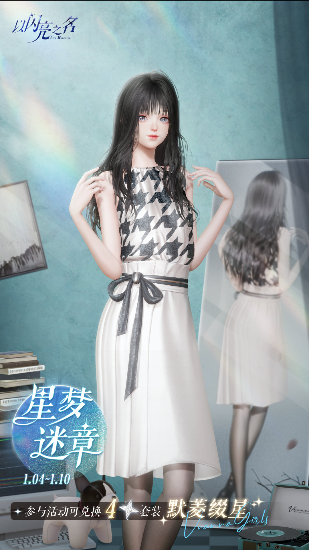 2025年1月1日更新后,限定追光活动【雪映心涟】上线!全新五星套装及SR羁绊限时登场!该追光活动每登场10次内必获得SR羁绊或限定五星套装部件(直至集齐所有限定五星套装)。此外,【雪映分解】商店也将同期限时开启,通过分解该限时追光活动内的服饰,可获得限定时装部件【洒墨心曳】、【霞光情书】、【幻彩星幕】、动态拍照动作【热恋节拍】、拍照动作【心动启程】及头像框、雪映风向标、心念之蝶、知之钥、金币等材料道具!