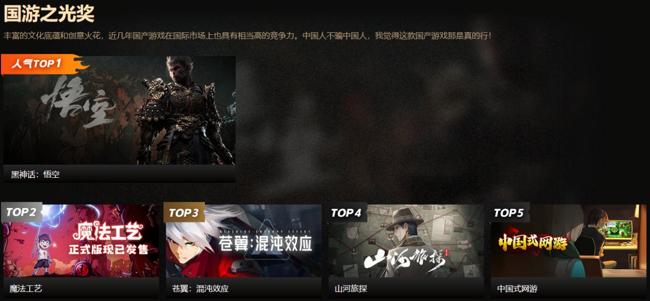 《黑神话:悟空》再次证明了其在国产游戏中的领先地位。《魔法工艺》和《苍翼:混沌效应》虽然表现出色,但仍需努力追赶。