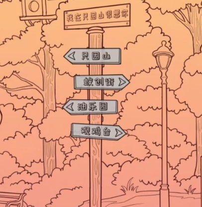 找齐当前场景下的所有目标后就可以解锁下一个场景,切换场景的路牌在接地气的同时也是谐音梗满满。