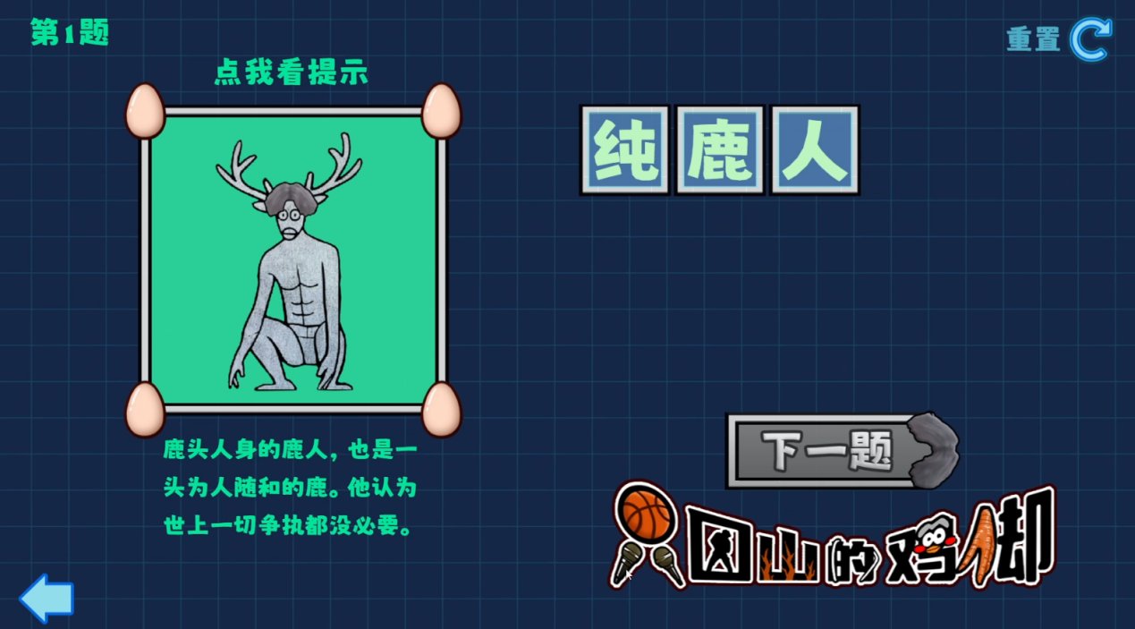 一句话概括游戏的玩法,就是大家来找茬。我们需要在一幅幅手绘画中找到任何一个长者鸡脸的东西,每一个鸡脸都会有对应的原生梗和谐音梗,比如长椅上的 “纯路人”,地上的 “路处忌蕉“(露出鸡脚),树上的“啼初鼠松”(提出诉讼)等等。