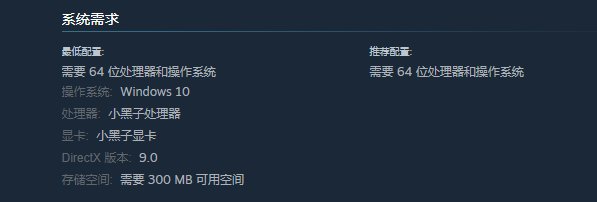 它的玩梗不仅仅局限于标题和简介,甚至都玩到了推荐配置中,毕竟只有真正的黑子配置才能享受到鸽鸽的游戏。